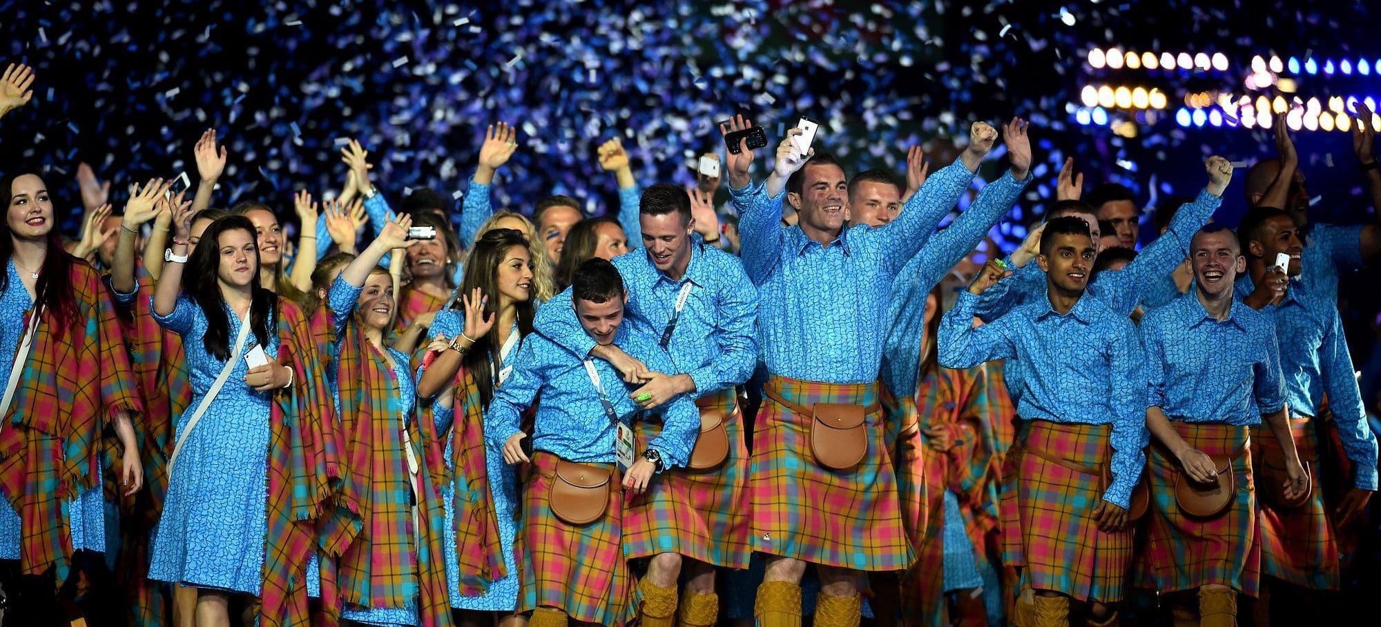 Her bold designs for the Opening Ceremony outfits certainly drew a lot of comment, with The Daily Telegraph describing the men’s pairing of vibrant blue shirts with a pink and caramel tartan kilt as a “clash of colours”. Meanwhile, female athletes wore a blue wraparound dress and tartan to complement the men’s kilts.